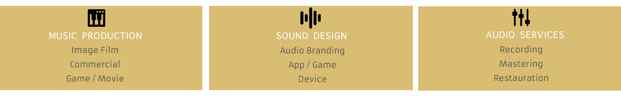 I M A G E F I L M Jeder Imagefilm braucht auch gute und passende Musik. Gemafreie Musik aus dem Katalog gibt es überall im Internet. Möchten Sie so klingen wie aus dem Katalog oder darf es, wie das Video selbst, etwas Besonderes sein? Mysound komponiert die passende Musik nach Ihren Wünschen und macht sie so zu einem unverwechselbaren, qualitativen Unikat. | C O M M E R C I A L Bei Internet, Radio und TV Werbung muss in kürzester Zeit musikalisch eine Stimmung und Wiedererkennung gegeben sein. Alle Genres und Zeiten sind möglich und werden bei Mysound mit höchstem Anspruch auf Qualität und Originalität produziert. Auch der professionelle Sprecher/in kann von Mysound organisiert und aufgenommen werden. | G A M E / M O V I E Als ein oft unterschätztes Element in Filmen und Videospielen ist die passende Musik ein fundamentales Mittel zum Transport von Stimmungen, Spannungsaufbau und vielem mehr. Spielemusik hat heute die gleiche Qualität und Anforderung wie Filmmusik. Ob Orchestral, Synthetisch oder Athmosphärisch, Mysound setzt hier auf höchste Qualität und Authentizität. |
